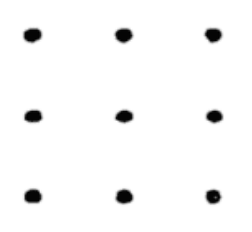 On a spare piece of paper draw a square of nine dots like this: