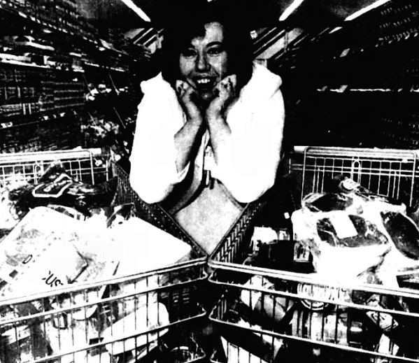 The prize gives a lucky lady shopper the chance to take her pick from the shelves of a town supermarket without having to pay a penny for the goods.
