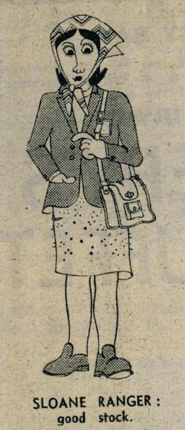 Comment which is hardly going to please the Sloane Rangers, the hardy breed of girls so neatly described in the Harpers-Queen’s catchphrase. They’re looking forward to a boom year with among other things tee shirts bearing the legend on offer from Lady Charles Spencer Churchill.