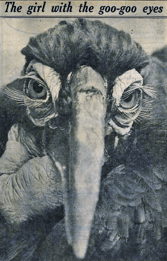 I’LL tell you, girls, I had a boy friend out in Bafwasende 2 who couldn’t look at my eyes without going into a tis-was. “Ellie,” he used to say—they called me Ellie then, but my name is Gorgeous now—“Ellie, your eyes are like jewels fringed with silk,” he used to say. “Go on with you,” I’d say, pecking him in the rump, “you’re only saying that because it’s true.” Oh, I had all the lads after me in Bafwasende, Belgian Congo—and you’ve simply no idea what lads terrestial [sic] hornbills can be. Now I’m in London Zoo.