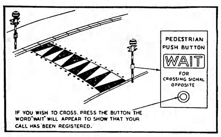 There is this great difference between the new and old type of push-button crossing. It is that no signals show at all to drivers when the way is free for traffic.