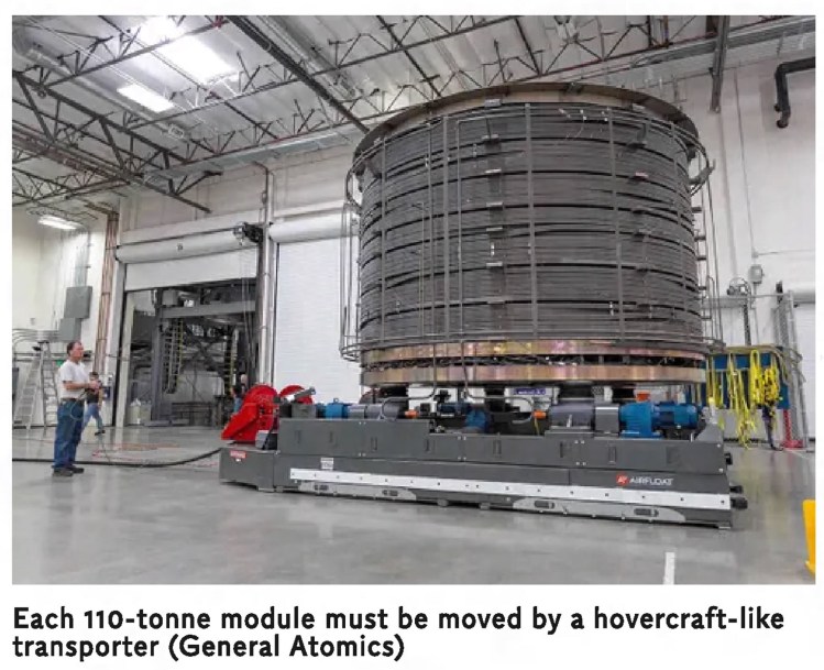 Each 110-tonne module must be moved by a hovercraft-like transporter (General Atomics)
