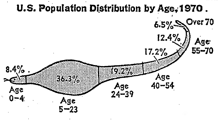 U.S. Population Distribution by Age, 1970.