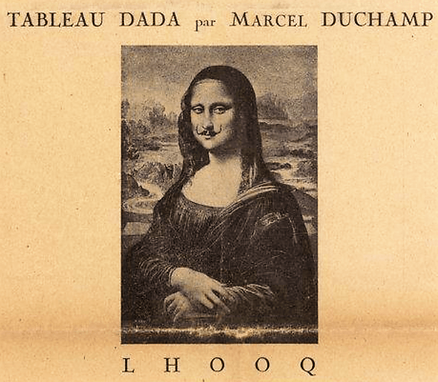 —Cf. also L H O O Q (i.e., she is hot-arsed), by the French artist Marcel Duchamp (1887-1968):