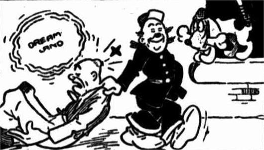 3-: From the caption to the following drawing, in a comic strip entitled Inspector Spot always on the spot, published in The Mirror Comic (Sydney, New South Wales, Australia) of Saturday 13th October 1917 [page III, column 3]: