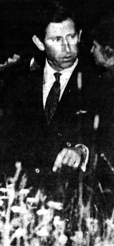 6-: From the caption to the following photograph of Charles (born 1948), then Prince of Wales, published in the Weekend Post (Reading, Berkshire, England) of Saturday 25th May 1985 [page 2, column 2]: