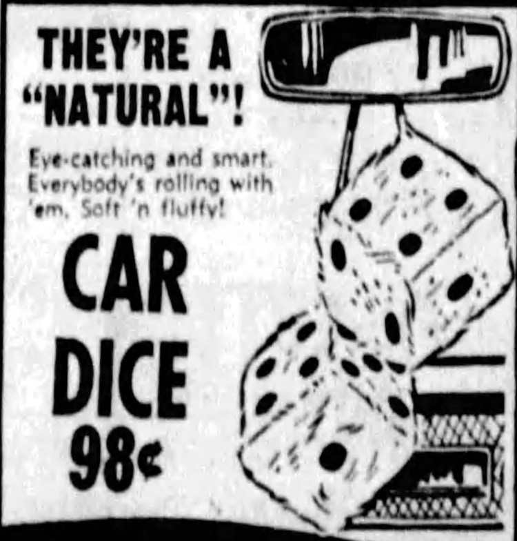 “Dangling dice may not be the biggest traffic hazard we have, but you can depend on the kind of driver who hangs them in front of his eyes to be dumb enough to commit other driving stupidities.”