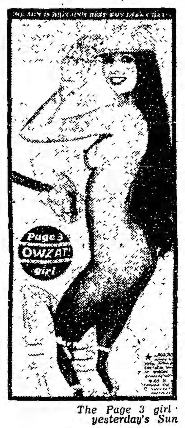 British English—‘Page Three’, or ‘Page 3’: a feature which appeared daily on page three of the British tabloid The Sun (London), and included a pin-up picture of a topless or nude young woman; this feature first appeared on 17 November 1970.