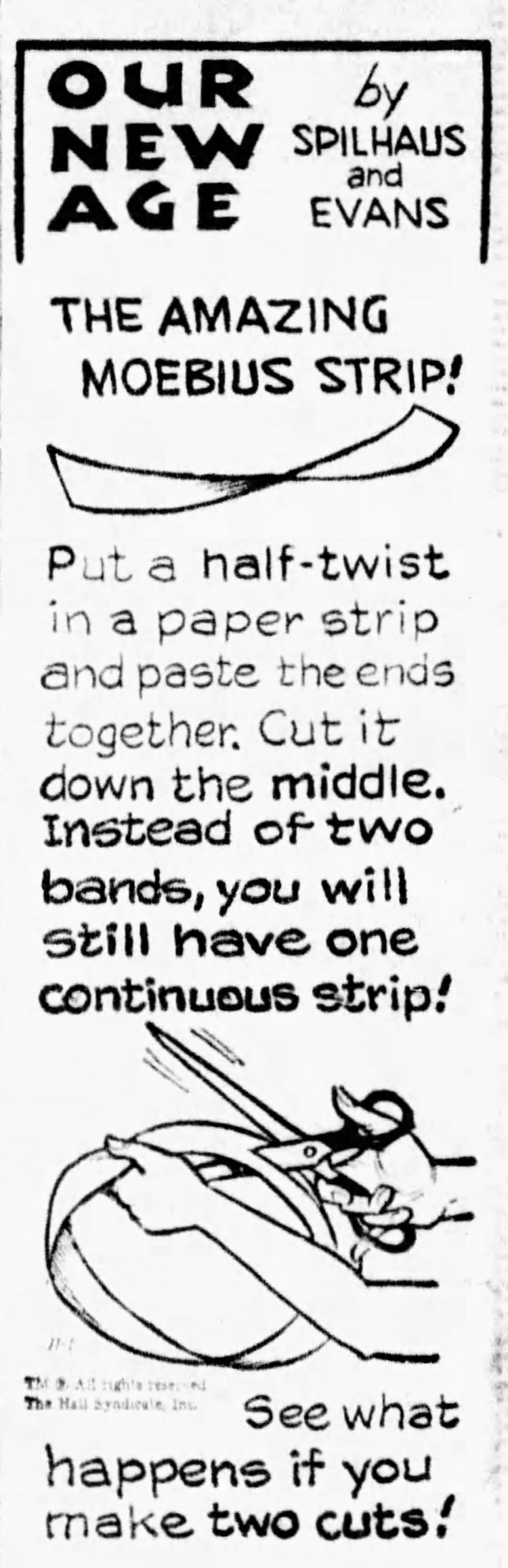 Read MoreUS 1960—person of whom only one aspect is known; continual phenomenon—from the one-sided continuous surface formed by joining the ends of a half-twisted strip