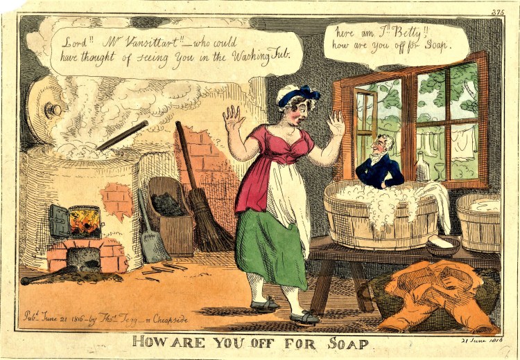 Read MoreUK, 1816—a meaningless bantering phrase—originated in a print published in June, satirising the fact that a bill on additional taxation on soap had been brought in unobtrusively in May by the Chancellor of the Exchequer