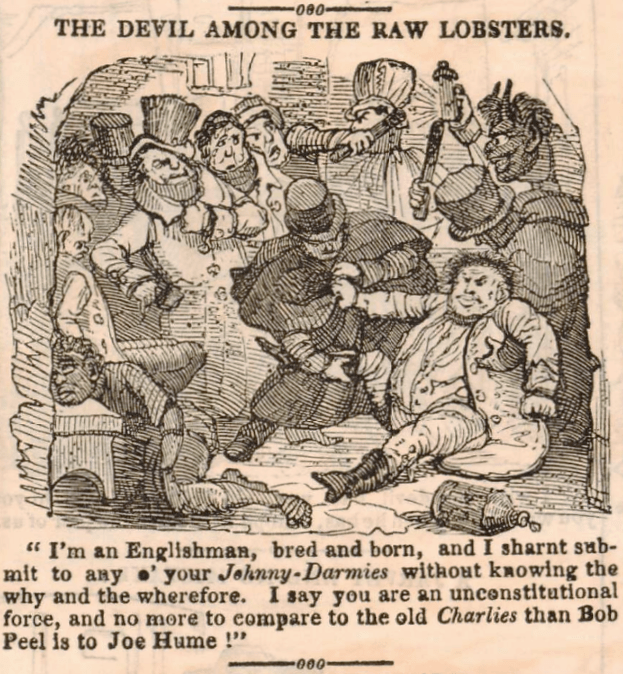 Read MoreUK, 1830—‘Jenny Darby’, ‘Johnny Darm’, and variants, were originally opprobrious names for any member of the new Metropolitan Police introduced in 1829 by Robert Peel—alterations of ‘gendarme’, with full or partial folk-etymological remodelling variously after the female forename ‘Jenny’, the male forename ‘Johnny’, and the surname ‘Darby’