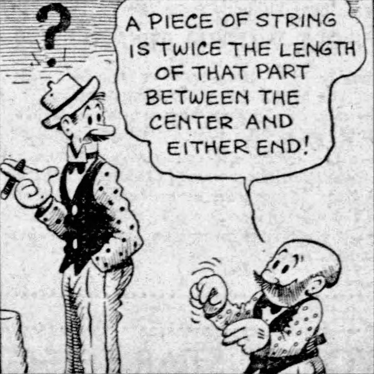 USA, 1885—a response to a question that cannot be answered precisely, although a precise answer seems to be expected—various jocular replies have been made up, such as ‘twice the length from the middle to the end